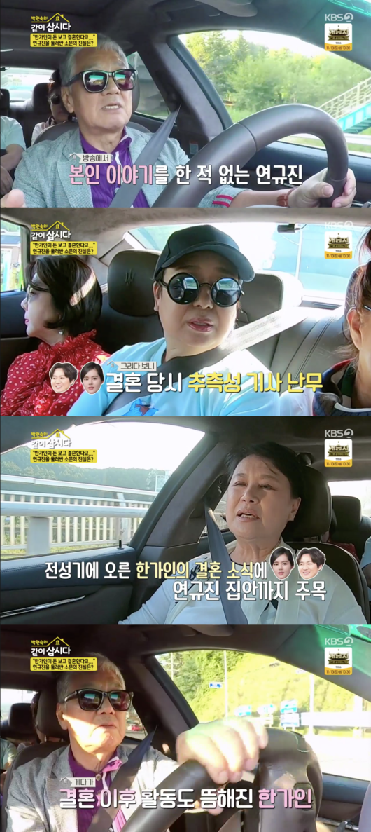이를 들은 박원숙은 “한가인이 한창 잘 나가는데 연정훈이와 결혼 했을 때는 ‘집안의 배경이 뭐가 있겠지’라고 생각을 했겠다. 그리고 활동을 안하니까”라고 설명하기도.
