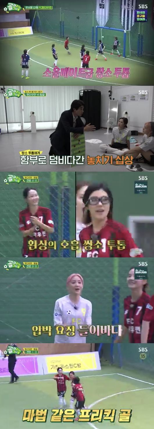 지난 10일 방송된 SBS ‘골(Goal) 때리는 그녀들’에서는 신생팀 평가전 마지막 경기인 FC 탑걸 VS FC 원더우먼의 대결이 그려졌다.