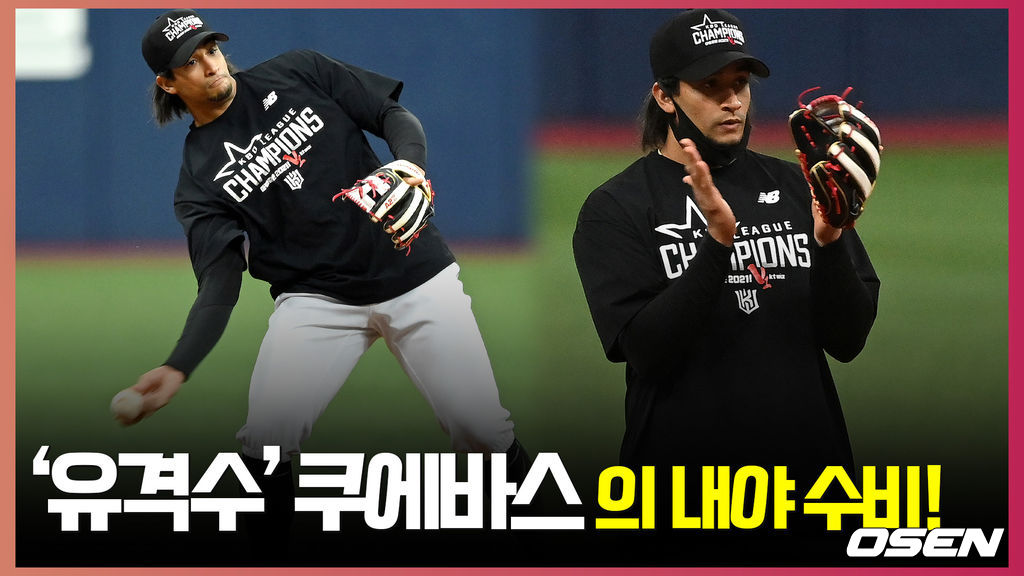 경기에 앞서 훈련 시간에 그라운드에 모습을 드러낸 쿠에바스. 내야에서 수비 훈련을 하며 가볍게 몸을 풀었다.