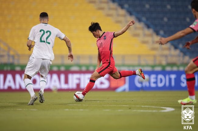 파울루 벤투 감독이 지휘하는 축구국가대표팀은 17일 새벽카타르 도하의 타니 빈 자심 스타디움에서 열린 ‘2022 카타르월드컵 아시아지역 최종예선 6차전’에서 이재성과 손흥민, 정우영의 골이 터져 이라크를 3-0으로 이겼다. 승점 14점(4승2무)의 한국은 이란(5승1무, 승점 16점)에 이어 조 2위를 지켰다. 3위 UAE(승점 6점)와 승점 8점차다.
