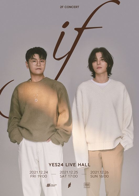 이 가운데 2F는 25일 오후 6시부터 YES24 홈페이지를 통해 단독 콘서트 'if'의 티켓 판매를 시작한다. 신용재, 김원주가 2F 결성 후 단독 콘서트를 여는 것은 이번이 처음이다.