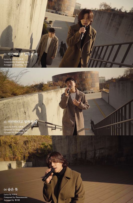 해당 영상에선 2F가 타이틀곡 ‘미안하다고 말하지 마’를 비롯해 수록곡 ‘늦은 말’, ‘어느 날’, ‘숨은 뜻’, ‘같이 가요’, ‘너와 나의 내일’의 일부분을 부르는 모습이 담겼다. 두 사람의 댄디한 비주얼과 쓸쓸한 배경, 감각적인 영상미가 어우러져 감성을 자극한다.