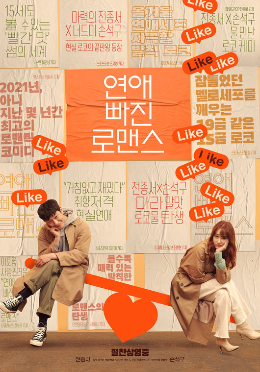 '연애 빠진 로맨스'(감독 정가영, 제작 트웰브져니, 배급 CJ ENM)는 연애는 싫지만 외로운 건 더 싫은 자영(전종서 분)과 일도 연애도 뜻대로 안 풀리는 우리(손석구 분), 이름, 이유, 마음 다 감추고 시작한 그들만의 아주 특별한 로맨스를 그린 영화다.