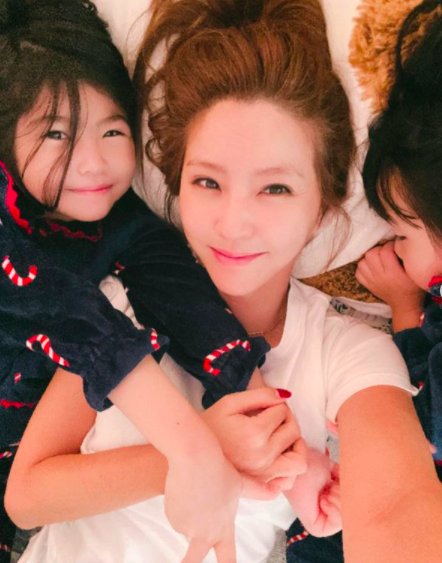 이윤미는 25일 자신의 인스타그램에 "#흔한아침일상 두딸들 사이에서 #굿모닝 오늘도 행복한 하루 시작입니다!!!"란 글을 게재했다.