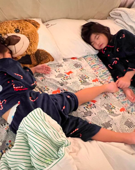 함께 공개한 사진 속에는 침대 위 둘째와 셋째 딸 사이에서 누워 포즈를 취한 이윤미의 모습이 담겨져 있다. 아침임에도 붓기 하나 없는 얼굴, 예쁘게 폭풍성장한 딸들의 모습이 눈길을 끈다. 행복한 아침의 모습이다.