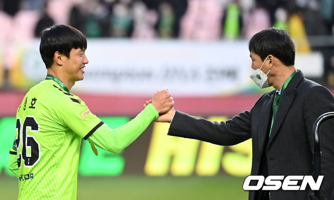 우승 세리머니서 '오열'에 가까운 눈물을 흘린 홍정호는 "시즌 전 감독님과 코치진, 선수들의 투표로 주장이 됐다. (이)동국이형이 워낙 잘해서 내가 할 수 있을까 하는 부담이 컸다"며 "동국이형 반만 하자고 생각했다. 제가 못 한 부분은 (최)철순이형과 (이)용이형이 잘 잡아줬다"고 했다.