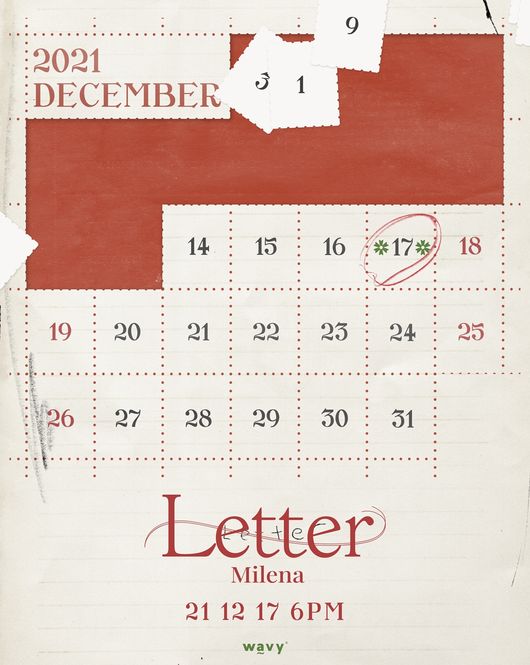 글로벌 뮤직 레이블 WAVY(웨이비)는 15일 "밀레나가 오는 17일 오후 6시 새 싱글 'Letter'를 발매한다"라고 밝혔다.