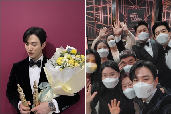 공개된 사진 속에는 이준호가 '2021 MBC 연기대상'에서 받은 2개의 트로피를 들고 찍은 모습이 담겨 있다. 이날 이준호는 '옷소매'로 베스트 커플상과 최우수상을 받았고, 이세영을 비롯해 이덕화, 강훈, 오대환, 장혜진, 정지인 감독 등과 남긴 단체 인증샷도 더했다. 동시에 홍보 요정답게 남은 2회를 본방사수 해달라는 멘트도 잊지 않았다.