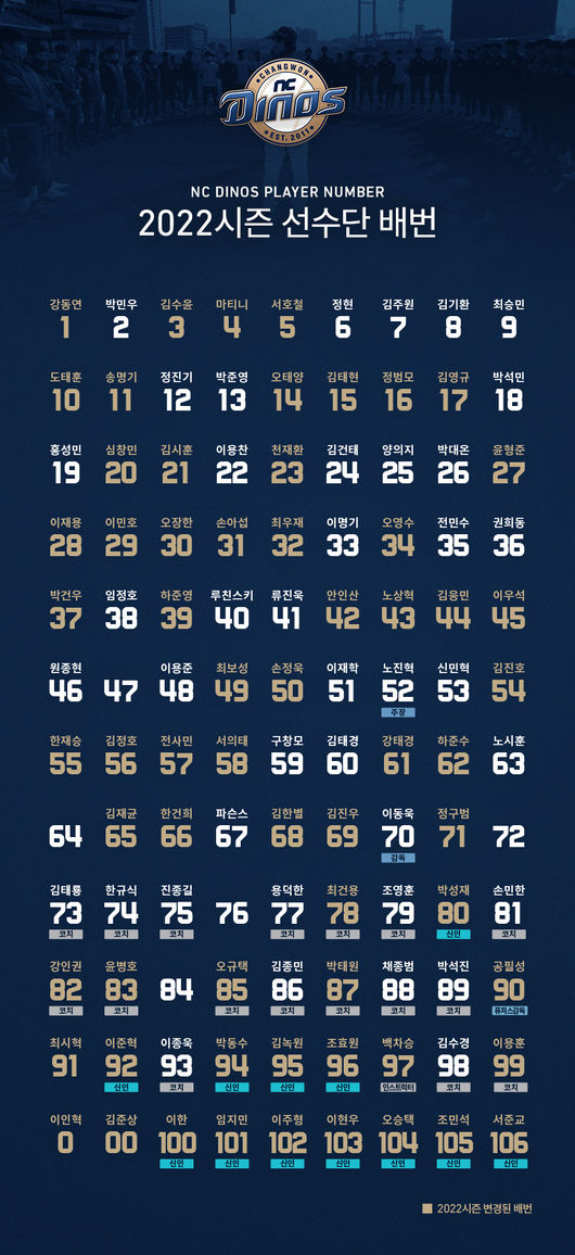 한편 지난해 12월 1대2 트레이드를 통해 NC의 새 식구가 된 심창민의 등번호는 20번으로 확정됐다. 그는 “새로운 팀 NC에서 올해 홀드 20개를 목표로 생각하며 배번 20번을 선택했다”고 이유를 밝혔다.