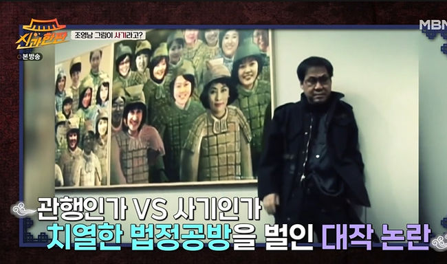 숨겨뒀던 진실이 무엇인지 물었다. 대작논란 시작에 대해 조영남은 "조수가 '내가 그림을 그렸다'고 인론 기자에 말하면서 불거진 것, 작품 중 '극동에서 온 꽃'이란 논란의 작품이 있다"고 운을 떼면서 "조수가 미국갈 비행기 노자가 필요하다고 해 그냥 돈을 주기보다 내가 그린 그림을 똑같이 그려오라고 했고, 지시대로 밑그림을 그려왔던 것, 최종 작업을 거쳐 수정 및 마무리해 , 완성 후 사인해서 팔았다"고 했다.