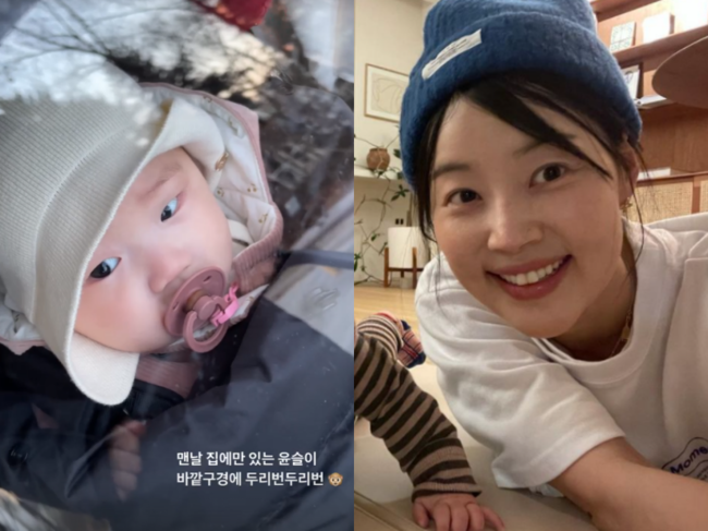 영상 속 한껏 텐션이 높아진 한지혜의 목소리 역시 윤슬이를 향한 사랑이 뚝뚝 묻어나온다. 이어 그는 윤슬이의 얼굴을 찍은 영상을 추가로 올리며 "맨날 집에만 있는 윤슬이. 바깥구경에 두리번 두리번"이라고 설명을 덧붙이기도 했다.