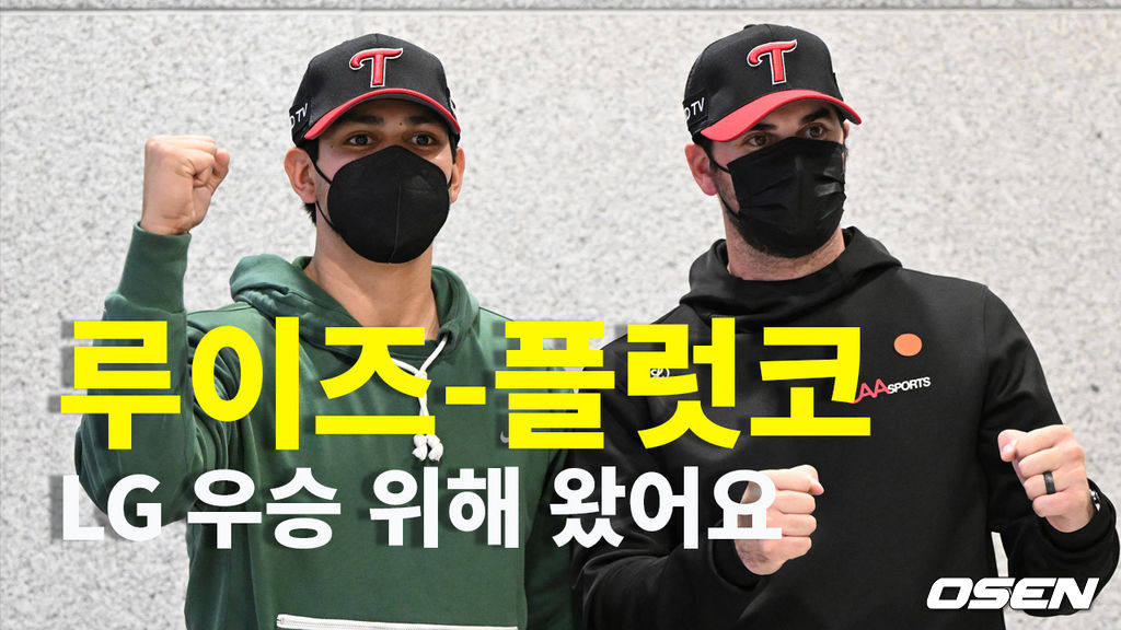 입국장을 나와 구단이 건넨 LG 모자를 쓰고 취재진을 향해 포즈를 취하며 포토타임을 마친 리오 루이즈와 아담 플럿코는 열흘간 자가 격리에 들어간다. 2월 3일 캠프 첫 훈련부터 선수단과 함께 한다. 2022.01.23 /sunday@osen.co.kr