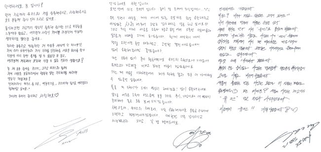 유키스 수현, 기섭, 훈은 25일 공식 SNS를 통해 신생 기획사 탱고뮤직(tango music)과 새 출발을 시작하는 소감을 손편지로 전했다.