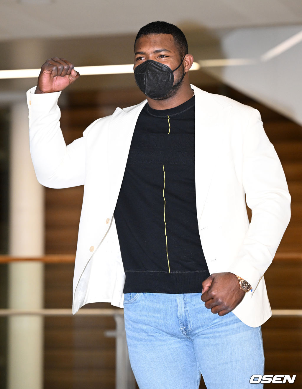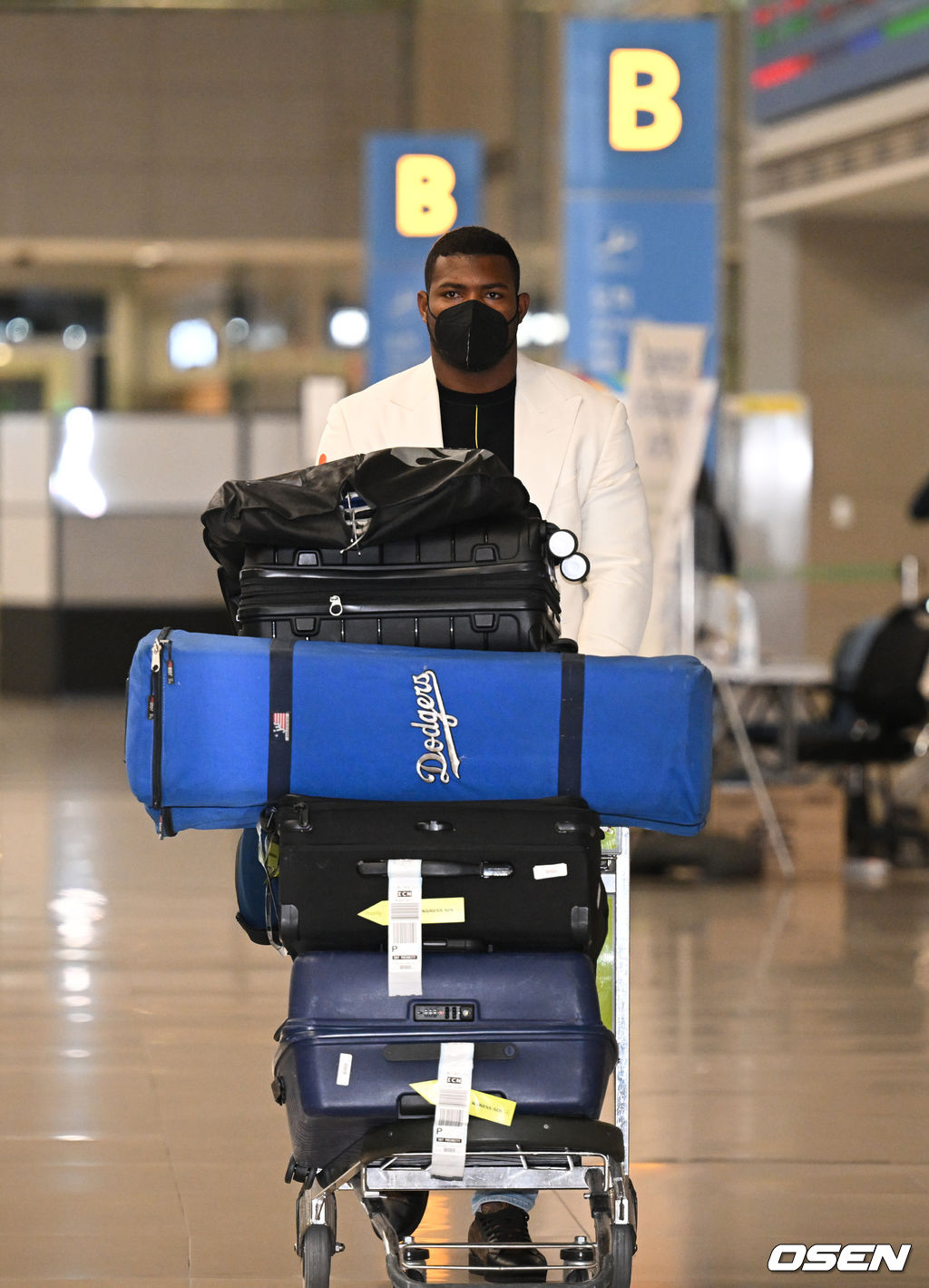 66번이 새겨진 다저스 가방과 함께 입국장을 나선 푸이그는 하트 포즈와 주먹을 불끈 쥐며 취재진의 플래시 세례에 화답했다.