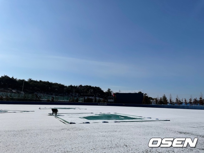 특히 6일 새벽에 내린 눈이 1구장과 2구장 전체를 하앟게 뒤덮을 정도로 쌓였다. 영하의 날씨에 눈까지 내린 탓에 스프링캠프가 아닌 윈터캠프를 방불케했다.