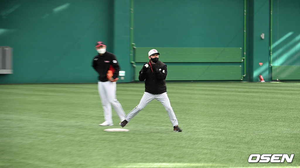 류지현 감독과 이영빈의 수비훈련 모습을 영상으로 담았다. 2022.02.09 /soul1014@osen.co.kr