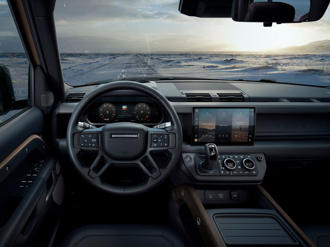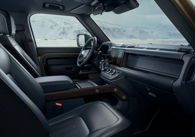 옵션으로 확장형 블랙 익스테리어 팩을 선택할 경우, 앞/뒤 스키드 팬과 그릴바, 본넷과 테일게이트 레터링이 글로스 블랙으로 마감된다. 인테리어는 디펜더 특유의 내구성과 단순미가 강조된 디자인으로 견고함과 실용성을 제공함과 동시에 최고급 윈저 가죽시트와 결이 느껴지는 러프컷 월넛 베니어를 투입했다.