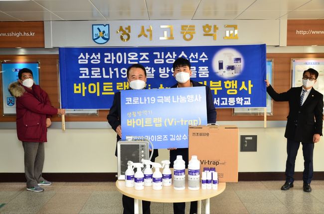 코로나19 확산세가 멈추지 않는 가운데 삼성 라이온즈 내야수 김상수가 대구 성서고등학교에 생활 방역 물품을 기증해 화제가 되고 있다.
