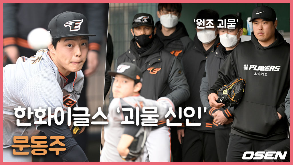 문동주는 그간 한화 퓨처스가 있는 서산 캠프에서 시즌을 준비했고 1일 오전 대전 한화생명이글스파크로 넘어왔다. 수베로 감독을 비롯한 코치진, 한화의 원조 괴물 토론토 류현진이 보는 앞에서 30구씩 두 번 총 60구를 던졌다. `원조 괴물` 류현진은 매의 눈으로 문동주의 투구자세, 보폭 등 머리부터 발끝까지 모든 부분을 유심히 살펴보았다.