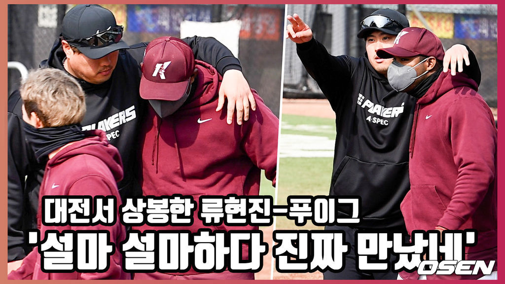 이날 취재진들의 요청에 가볍게 훈련 마친 류현진은 키움 선수들이 도착하기를 기다렸다. 푸이그가 도착하자 류현진은 특유의 장난을 치며 팀미팅에 늦을 뻔한 동생을 재촉했다.