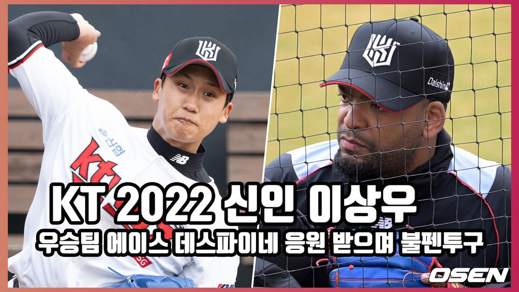 KT 위즈 2022 신인 이상우가 데스파이네의 응원을 받았다.