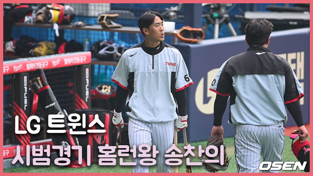 송찬의는 지난 2018년 LG에 지명됐지만 1군 무대의 기회를 얻지 못했다. 길었던 기다림의 시간 끝 이번 2022 시범경기로 1군 무대를 밟아 시범경기 홈런 1위를 차지했다.