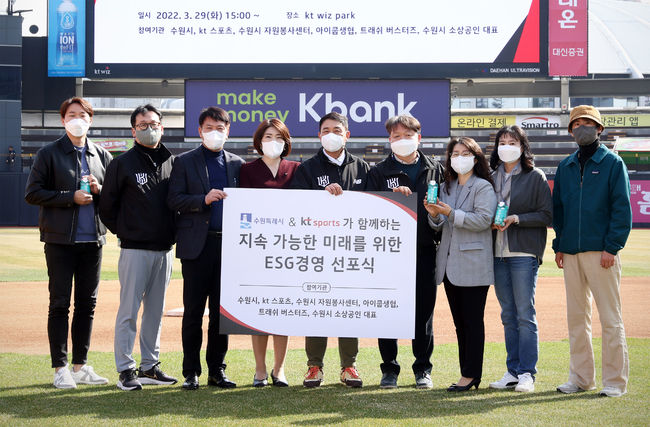 KT는 29일(화) 수원케이티위즈파크에서 ‘수원특례시와 함께 하는 kt sports ESG 경영선포식’을 개최했다고 밝혔다.