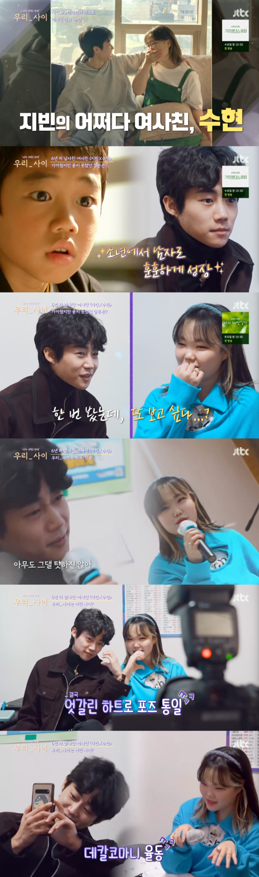 4일 방송된 JTBC ‘우리 사이’에서 박지빈은 홍대의 한 노래방에서 여사친 악뮤 수현을 만났다. 2017년 PC방에서 만나 자연스럽게 친해졌다는 두 사람은 6년차 ‘찐친’이었다. 박지빈은 “당당하게 제가 제일 예뻐하는 동생이라 말할 수 있는 특별한 관계”라고 자랑했다.