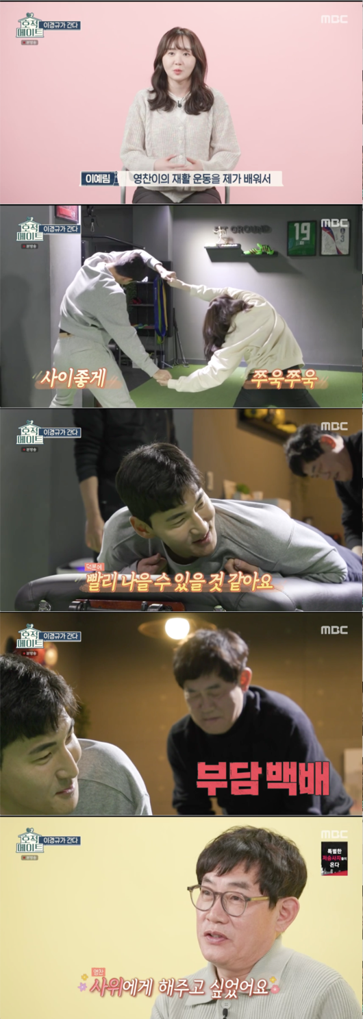 5일 오후 방송된 MBC 예능프로그램 ‘호적메이트'에서는 축구선수 사위를 위해 특급 재활 케어를 준비한 장인어른 이경규의 호적라이프가 그려졌다.
