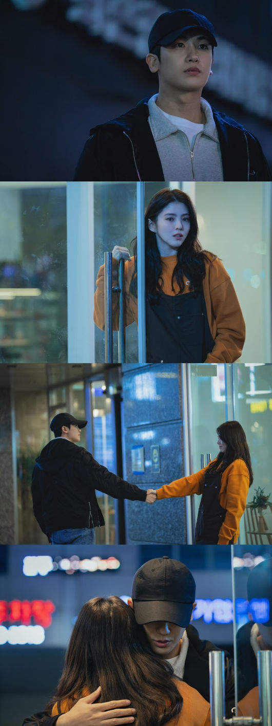 다음 사진에서는 마치 인사라도 하듯 한선우와 이은수가 마주 선 채 두 손을 붙잡고 있다. 마지막 컷에서는 모자를 푹 눌러쓴 한선우가 이은수를 와락 품에 끌어안고 있어 시선을 강탈한다. 두 사람 사이에서 애틋함과 아련함이 묻어나는 이유는 무엇일까. 왜 두 사람이 포옹을 한 것일까.