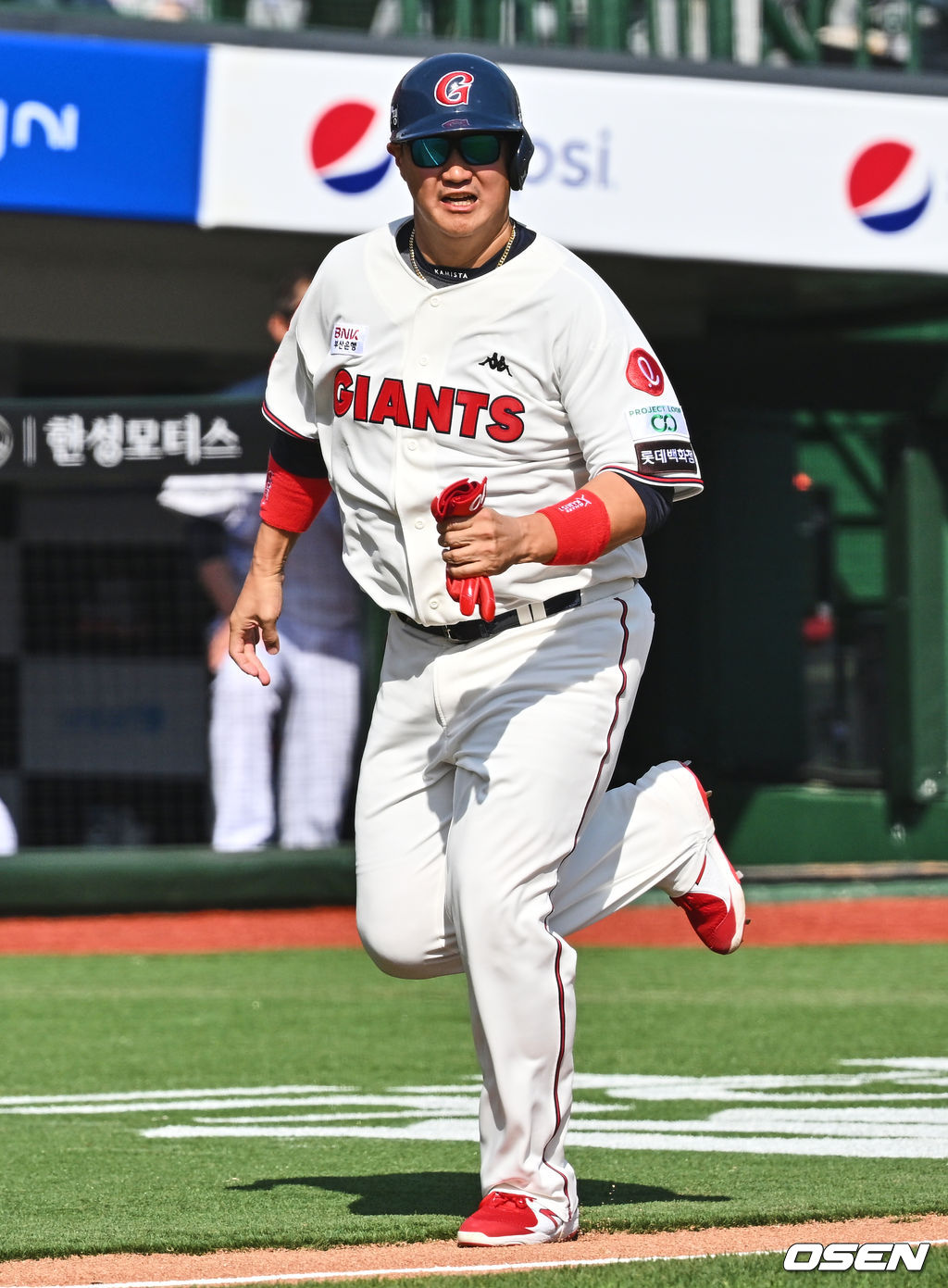 미래의 롯데 4번 타자 한동희의 적시타에 조선의 4번 타자 이대호가 열정적인 주루플레이로 화답한 것이다.