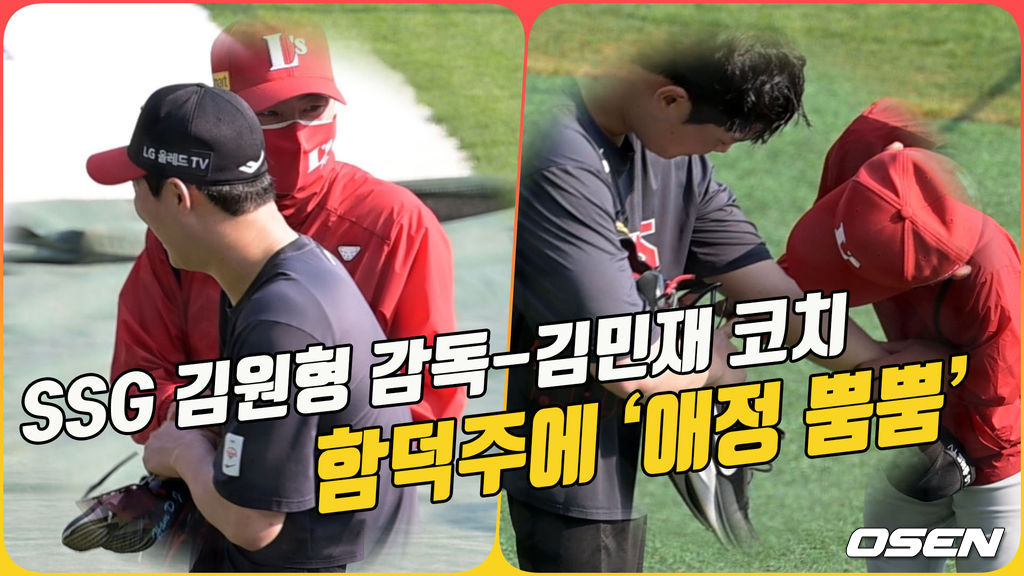 SSG 김원형 감독-김민재 코치, 두산 시절 제자 함덕주에 ‘애정 뿜뿜’[O! SPORTS]