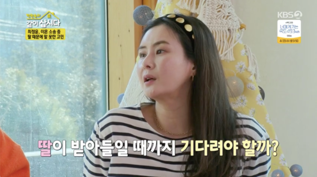 최정윤은 “아이가 아빠를 너무 기다린다. 어렸을 때는 아빠가 바쁘다고 핑계를 댔다. 지금은 솔직하게 얘기를 한다. 아빠가 떠났다고. 둘만 있으면 이혼을 했을 거다. 근데 아이가 질문을 하는데 같이 사는 사람만 아이의 심정을 아는 거다. 하루에 열두번은 감정이 바뀐다”라고 솔직한 마음을 전했다.