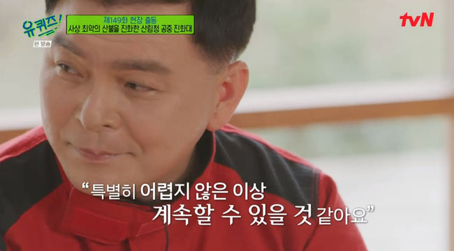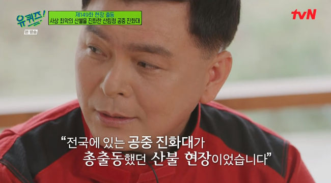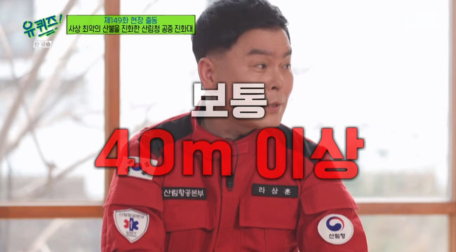 이날, 산림청 공중진화대 라상훈 팀장이 산불에 대한 이야기를 전했다. 라상훈 팀장은 "헬기를 타고 산속을 들어가는 일이니까 2002년 대둔산에 들어갈 때 기장님이 헬기에 이상하다고 하셨다. 기장님 판단에 복귀가 힘들다고 여기셨는지 비상탈출을 했다. 꼬리가 떨어지고 헬기 날개가 계속 돌아갔다. 그 시간이 굉장히 길게 느껴지더라. 다행히 날개가 멈춰서 무사히 탈출했다"라고 말했다.