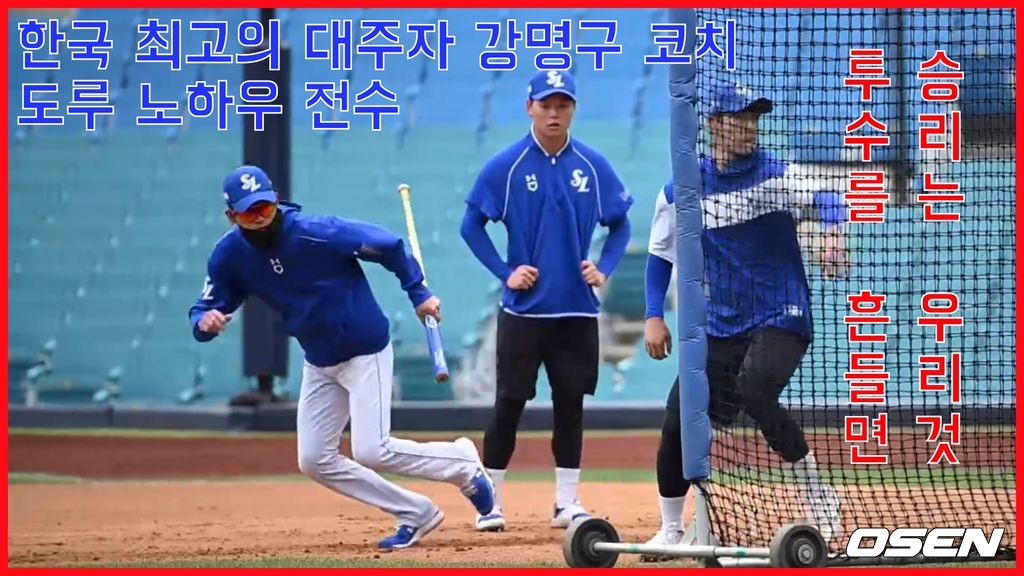 “방망이는 믿을 게 못 돼요. 근데 발에는 슬럼프가 없어요.” 삼성 라이온즈 강명구 코치가 예전 한 방송사와 인터뷰에서 한 얘기다. 강명구 코치는 한국 프로야구를 대표했던 대주자다. 단순히 발만 빠른 게 아니라 주루 센스 또한 뛰어나 통산 도루 성공률이 82%에 달했다고 한다. 현재 삼성 1군 주루코치인 그가 김동진, 박승규에게 1루에서 상대 배터리를 강하게 흔들며 도루를 가능케 하는 주루 노하우를 전수했다. 리드폭과 투수의 투구폼을 읽어 공을 던지는 타이밍에 빠른 스타트를 끊는 방법 등을 자세히 설명해 주는 모습을 영상으로 담았다. / foto0307@osen.co.kr