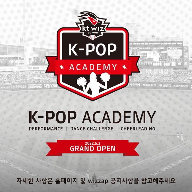 올해 신설되는 kt wiz K-POP 아카데미는 야구 경기 중 응원단상에서 펼쳐지는 대중 음악 무대와 치어리딩 응원무들을, 응원단이 직접 팬들에게 가르쳐주는 프로그램이다.