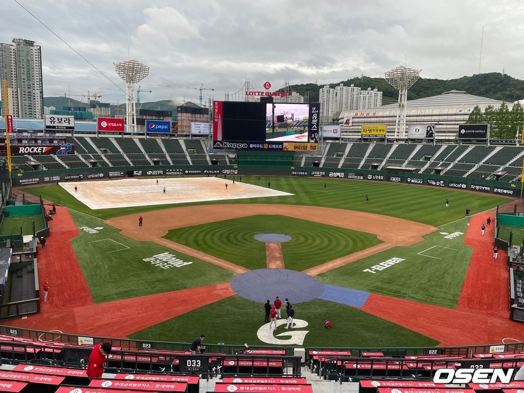 26일 부산 사직구장에서 열리는 SSG 랜더스와 롯데 자이언츠의 경기가예정대로 진행이 될 전망이다. 오후 4시까지 폭우가 쏟아졌지만 이후 빗줄기는 잠잠해졌다.