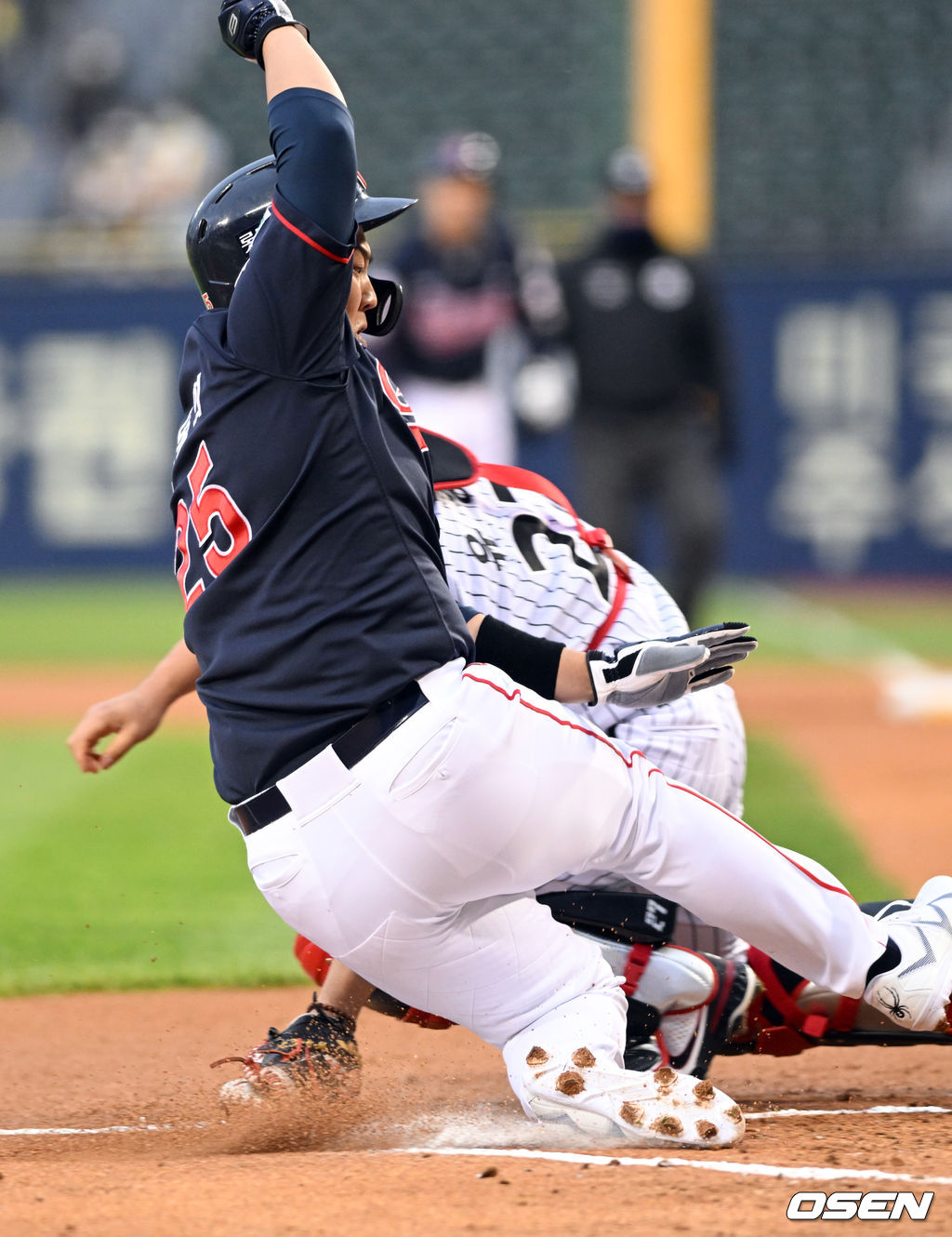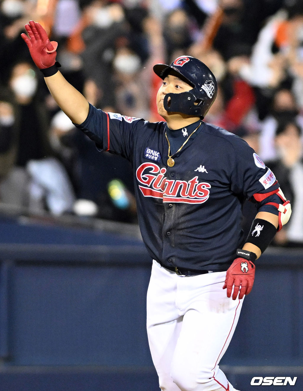 1회초 1사 2루 상황에서 볼넷 출루에 성공한 한동희는 이대호의 적시타에 2루를 밟고, 안치홍의 적시타에 홈으로 쇄도하며 득점을 올렸다.