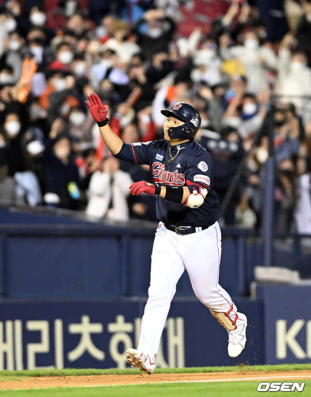 한동희의 가장 큰 한방은 9회에 나왔다. 롯데가 6-4로 앞선 9회 무사 1,2루에서 한동희는 LG 최동환의 141km/h 직구를 받아쳐 비거리 130m 대형 쓰리런 홈런을 쏘아올리며 최고의 타자임을 입증했다. 2022.04.29 /cej@osen.co.kr