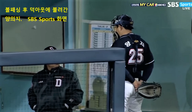 2018년 4월의 일이다. 대구 두산전 때다. 7회 말을 준비하는 연습 투구가 시작됐다. 그런데 곽빈이 던진 공을 포수(양의지)가 슬쩍 흘린다. 뒤에 있던 구심(정종수)에 맞을 뻔했다. 깜짝 놀라는 표정이다.