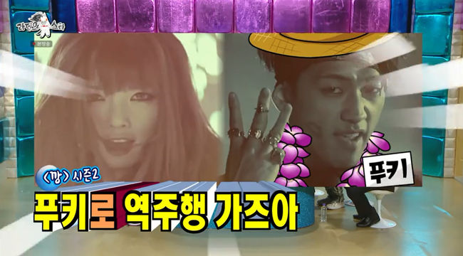 이날 안영미는 '깡'에 이어 밈으로 이을 곡으로 현아와 함께 부른 '어디가요 오빠'를 이야기했다. 비는 "원하면 현아와 이 곡을 함께 무대에서 해보겠다. 대신 내 이름은 푸키"라며 라비에게 예명 푸키를 받아 '어디가요 오빠' 무대를 예고해 눈길을 끌었다.