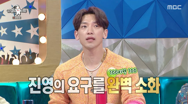 비는 "둘이 춤 배틀을 했다. 사실 소속사는 듀스 같은 팀을 만들고 싶었던 거다"라며 "근데 둘 다 매력 있다고 해서 결국 솔로로 나왔다. 근데 '천생연분' 왕중왕전에 나와달라고 하더라. 진영이 형이 또 나한테 넌 세븐한테 안 될 것 같다고 하더라. 30초 안에 다 죽이겠다고 결심했다. 그렇게 나온 게 3단 꺾기"라고 말해 주위를 깜ㅉ가 놀라게 했다.