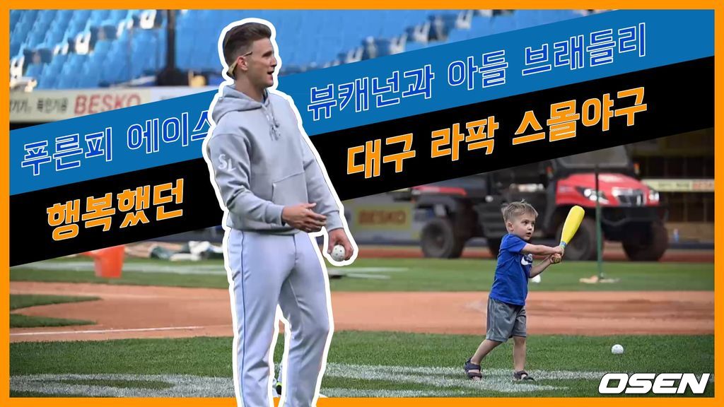 대구라이온즈파크에서 열린 두산과의 경기에서 올시즌 첫 완봉승을 세운 뷰캐넌. 삼성 라이온즈의 에이스 뷰캐넌이 14일 대구 삼성라이온즈파크에서 두산 베어스와 치른 2022 신한은행 SOL KBO 홈경기에 선발 등판해 9이닝 동안 119구 6피안타 2볼넷 4탈삼진 무실점 완봉승을 기록했다. 등판 다음날인 15일 삼성은 두산에게 다시 4-3으로 승리하며 두산전 4연승을 기록했다. 경기내내 관중들과 함께 응원가에 맞춰 선수들을 응원했던 뷰캐넌. 경기가 끝나자 아들 브래들리와 함께 라팍에서 야구를 했다. 투수인 아빠는 던지고 타자인 아들은 아빠의 공을 쳤다. 파울볼에 맞으면 바로 쓰러지는 귀여운 모습도 연출했다. 혹시 먼 미래에 뷰캐넌의 아들도 푸른피가 흐르지 않을까? / foto0307@osen.co.kr