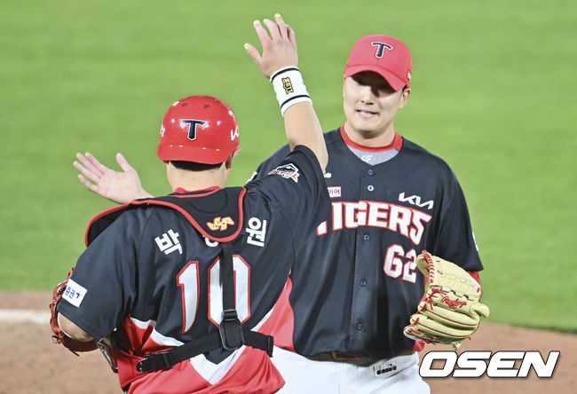 리드를 다시 잡은 KIA는 9회말 어김없이 정해영 카드를 꺼내 들었다. 정해영은 정보근(유격수 뜬공), 이학주(2루 땅볼), 황성빈(포수 스트라이크 낫 아웃)을 공 8개로 끝냈다.