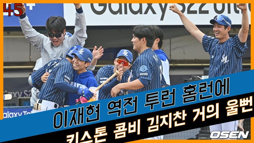 키스톤 콤비 김지찬은 마치 자기가 친 것 같이 이재현의 홈런을 축하했다.