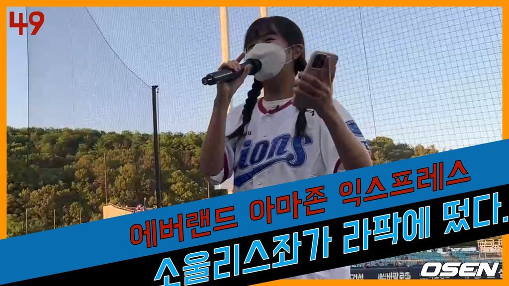 “머리! 젖습니다. 옷도! 젖습니다. 신발! 젖습니다. 양말까지 젖습니다. 옷 머리 신발 양말 다 다 젖습니다. 물에 젖고 물만 맞는 여기는 아마존. 아, 마, 존조로존조로존~” 못 본 사람은 있어도 한 번만 본 사람은 없다는 에버랜드 아마존 익스프레스 소울리스좌. 삼성 라이온즈는 26일 KIA와의 대구 홈경기에 에버랜드 데이를 진행했습니다. 이번 이벤트 데이는 에버랜드 유튜브 채널 티타남(티익스프레스 타주는 남자)이 대구삼성라이온즈파크에 방문하는 컨셉으로 추진하게 됐으며 에버랜드의 어트랙션 아마존 익스프레스 안내 멘트로 인기를 끌다 티타남에 합류한 소울리스좌(김한나 양)도 참여했습니다. 시구는 에버랜드 티타남의 점장(김희원 프로)이 진행하고 시타는 소울리스좌(김한나 양), 티타남의 족장(손영훈 프로)이 심판 역할을 했습니다. 또 소울리스좌(김한나 양)는 2회 초가 끝나고 3루측 응원 단상에 올라 직접 삼성 응원랩을 선보였습니다. 소울리스좌는 “앞에 있는 야구 배트를 손에 잡아 시원하게 승리하는 여기는 라이온즈. 볼넷 좋습니다. 안타 좋습니다. 홈런 좋습니다. 데드볼도 좋습니다. 남녀노소 구분없이 다다 빠져드는 혼연일치 라이온즈 여기는 블루즈입니다. 혼.연.일.체. 동도르동동동글 라이온즈 팬들이 가득 여기는 라~~팍입니다.”라는 내용으로 삼성의 승리를 응원했습니다. / foto0307@osen.co.kr