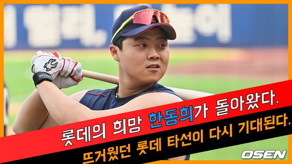 한동희는 부상 이탈 전까지 41경기에서 타율 3할3푼8리 8홈런 26타점, OPS .960, 득점권 타율 .344, 출루율 .393, 장타율 .567을 기록 중이었다.