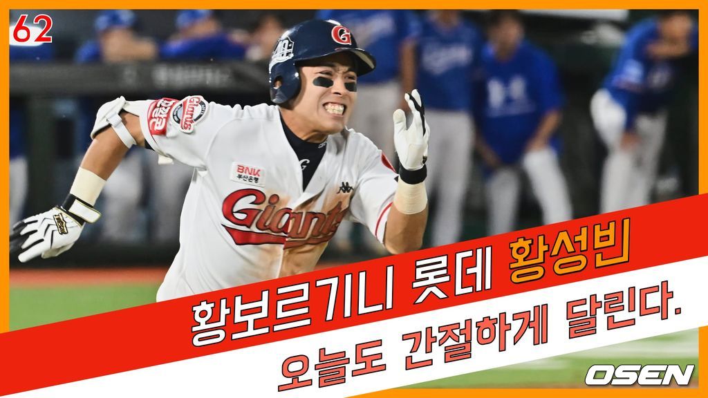 빠른 발과 몸을 사리지 않는 플레이, 타석에서의 집요한 태도, 많은 내야 안타는 과거 롯데를 대표했던 호타준족의 대명사 전준호 롯데 주루코치를 연상시키지만 매 순간 자신의 능력을 증명해야 하는 백업 선수이기에 황성빈은 오늘도 열심히 뜁니다. / foto0307@osen.co.kr