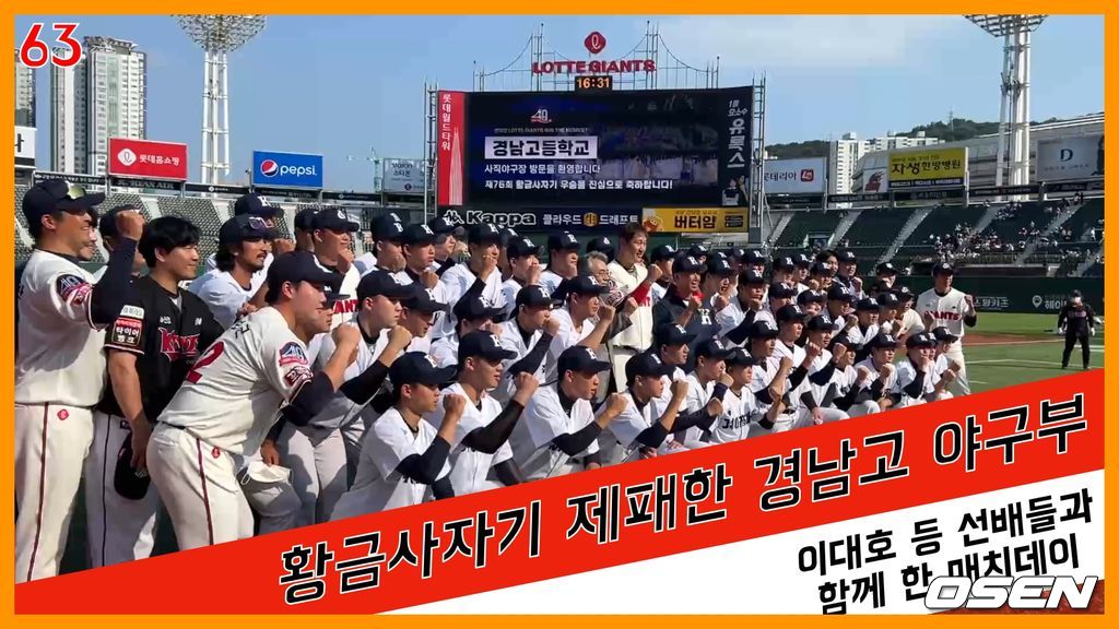 롯데 자이언츠가 11일 사직구장에서 열린 KT 위즈와의 홈 경기를 ‘경남고 매치데이’로 명명하고 황금사자기 전국 고교야구 대회를 제패한 경남고등학교 야구부 선수들을 초청했다.