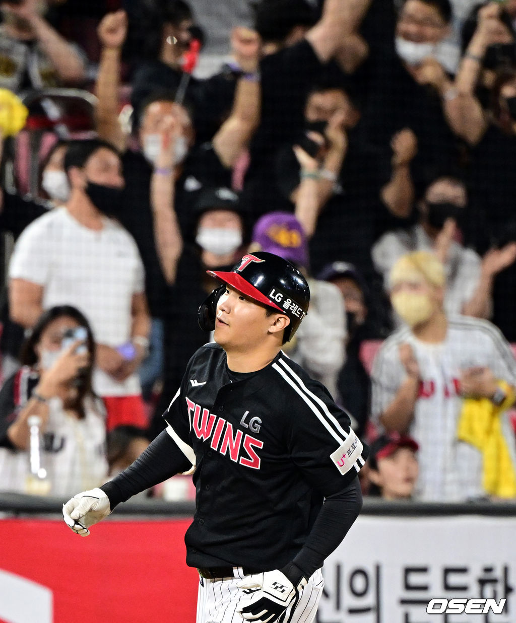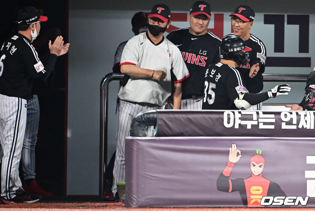 이번엔 뜨거운 박수로 축하했다. 류지현 감독은 문보경이 더그아웃으로 들어설때부터 동료들을 향해 가는 뒷모습에까지 계속해서 박수를 보냈다.